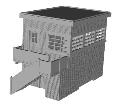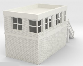 LMS ARP Signal Box Given the importance of signal boxes to the running of a railway, it was deemed important at the start of WW2 to build new and relacement signal boxes which could withstand some bombing. Concrete and brick would be the main material used, and the LMS even replaced wood with metal for windows. Most new signal boxes were big, some very big,but smaller ones could be found and the last LMS ARP type was installed as late as 1949 at Town Green station near to Ormskirk. This one is a small, 3 window sized signal box, which is ideal for small stations and yards. Available with either a brick staircase or an open one with concrete side panels, either as a left or right hander. |