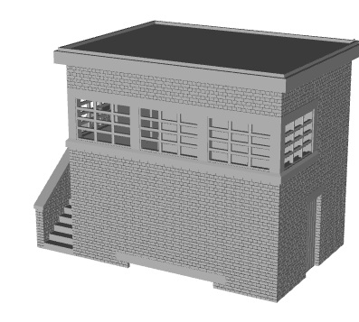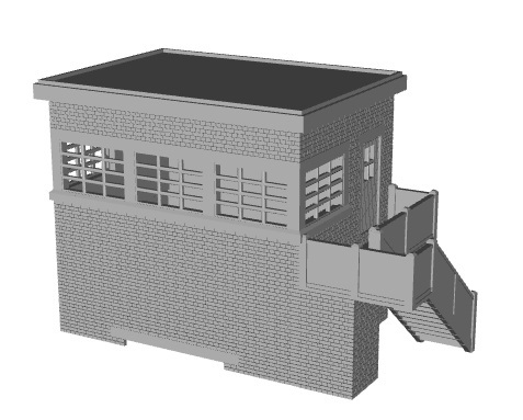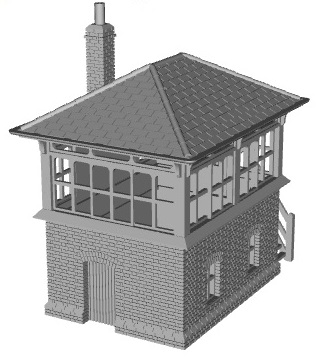 LBSCR small signal box Possibly a classic design, with its overhanging roof. Found all over the LBSCR system, and beyond. Sizes from small to large. Size depending on size of Saxby and Farmer signaling lever frame. This is a fairly common sized version, 15ft by 11ft, found on many small stations. This particular one is based on the preserved one at Isfield. Brickwork is a variant of Flemish bond, with odd bricks to enable bond to work along full length and width. Interior not included, but this can be fitted from below (or fit box over interior). Requires finishing and painting |