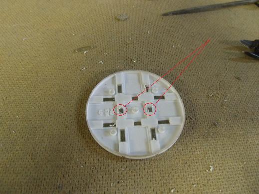 9:Turning the base over, it is possible to see the slots(marked) through which the wires