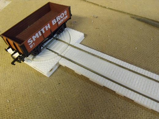2:After cleaning up the grooves the rails fit in, cut 2 short lengths to fit on dummy track.